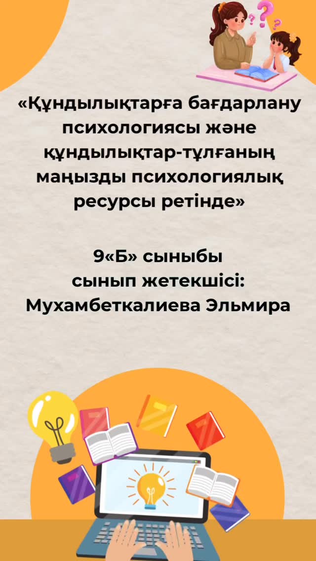 «Құндылықтарға бағдарлану психологиясы және құндылықтар – тұлғаның маңызды психологиялық ресурсы…